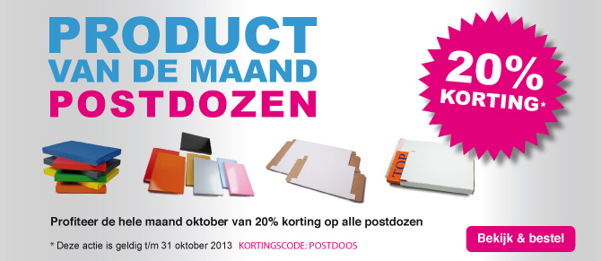 U krijgt maar liefst 20% korting op alle postdozen uit ons assortiment.