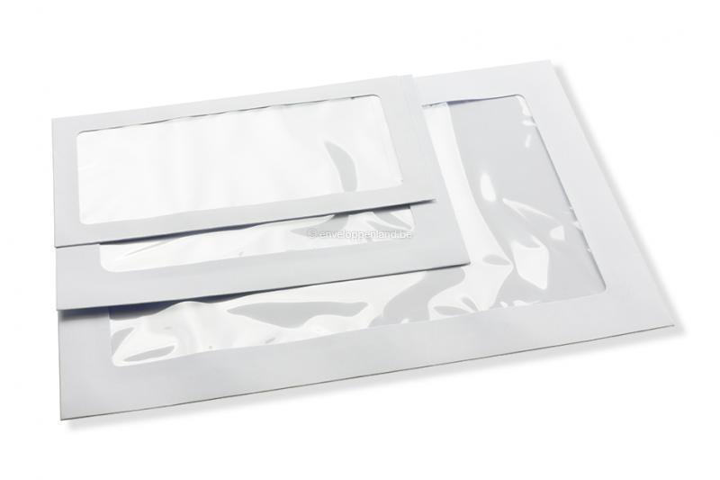 Deze speciale serie enveloppen met panoramavenster bestaat uit 4 verschillende formaten met een zeer groot venster. U kunt deze perfect gebruiken voor uw foto's, afbeeldingen en uitnodigingen. Deze enveloppen zijn voorzien van een plakstrip en zijn vanwege de opening aan de lange zijde gemakkelijk te vullen.