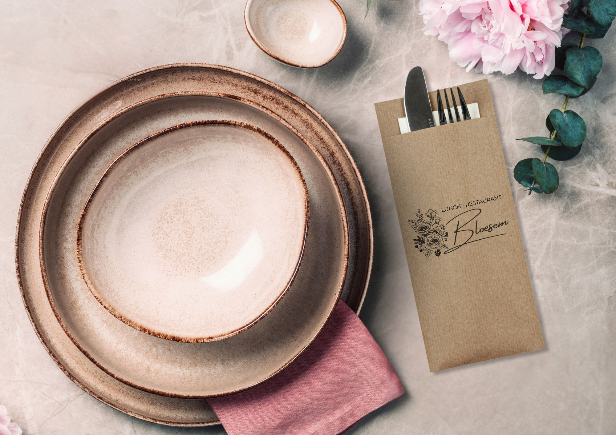 De bestekzakjes, ook wel bestekpochettes genoemd, zijn reeds voorzien van een papieren servet van 24 x 40 mm (keuze uit verschillende kleuren). U hoeft enkel nog het bestek er in te steken. De bestekzakjes zijn verkrijgbaar in stevig wit, bruin of zwart papier. Bij de witte bestekzakjes kunt u kiezen uit met of zonder bestek insnede. U kunt de bestekzakjes laten voorzien van uw logo, bedrijfsnaam, boodschap et cetera (niet aflopend). U kunt er zelfs voor kiezen om de bestekzakjes te laten personaliseren. Door gebruik te maken van bedrukte bestekzakjes zullen uw gasten continu herinnerd worden aan uw bedrijfsnaam. Zodoende is het indirect een perfect reclamemiddel.